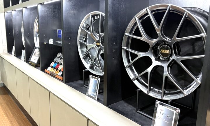 上越地域では唯一の展示となる、超超ジュラルミン鍛造1ピースホイール「RI-D」「RZ-D」を始め、アルミ鍛造2ピースホイール「RI-S」「LM」、アルミ鍛造1ピースホイール「RE-V7」「RI-A」「RE-X」など数多くのモデルを展示しております。軽さや質感、実際のカラーリングに触れていただくことはもちろん、いちばん大事な「クルマに似合うかどうか」を実際にお客様のお車の横に並べてお確かめいただけます。